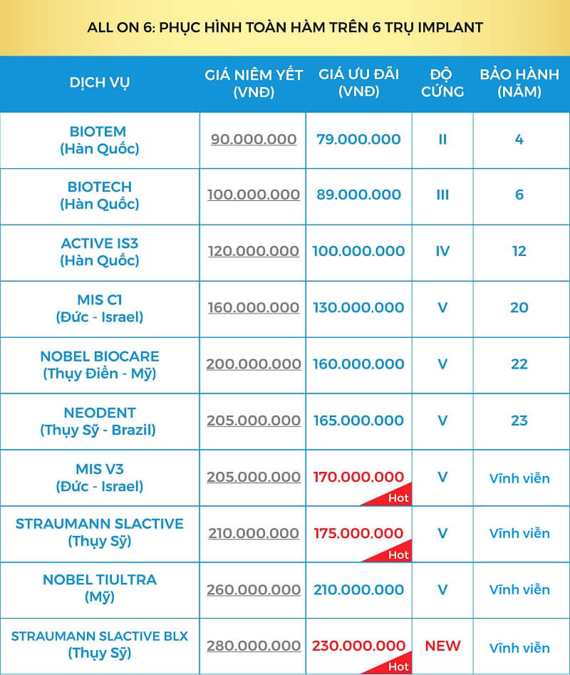 - 3.3. Giá Implant All on 6: Phục hình toàn hàm trên 6 trụ Implant