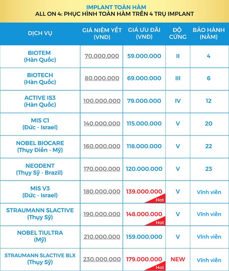 3. Bảng giá trồng răng Implant toàn hàm